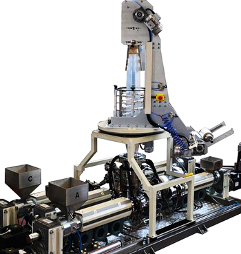LAB: Máquinas para pruebas de laboratorio para el I+D con un reducido tamaño, proporcionando unas características iguales a las maquinas industriales, La capacidad productiva va desde 7 kg/h hasta los 20 kg/h. Y anchos de 100mm hasta 350mm